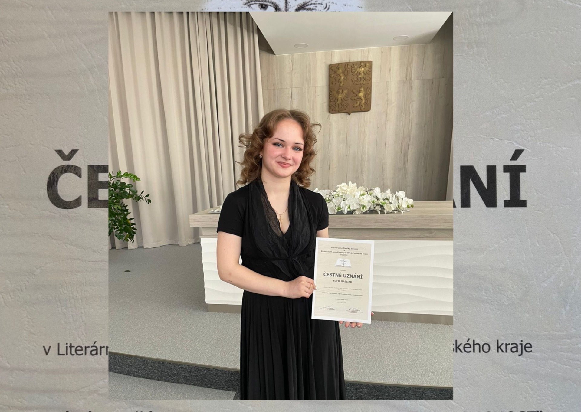 Žákyně naší školy, Sofiie Masliak z 9.B ZŠ Slavičín–Vlára, dosáhla mimořádného úspěchu v literární soutěži pořádané Nadací Jana Pivečky ve spolupráci s Gymnáziem Jana Pivečky a SOŠ Slavičín. Soutěž nesla inspirativní název "Vnímáme přítomnost, abychom ovlivnili budoucnost" a přilákala mnoho talentovaných autorů.